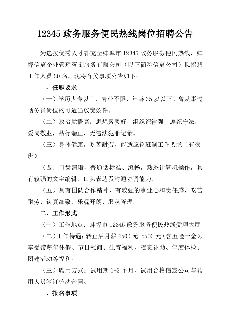 12345政务服务便民热线岗位招聘公告